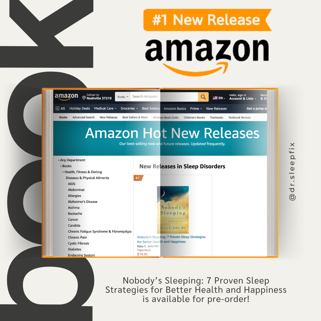 Nobody’s Sleeping: 7 Proven Sleep Strategies for Better Health and Happiness hit the top of Amazon’s New Releases in its category the first week it was available for pre-order! I am thrilled and honored to bring such a valuable resource to people who are desperate for a good night’s sleep.